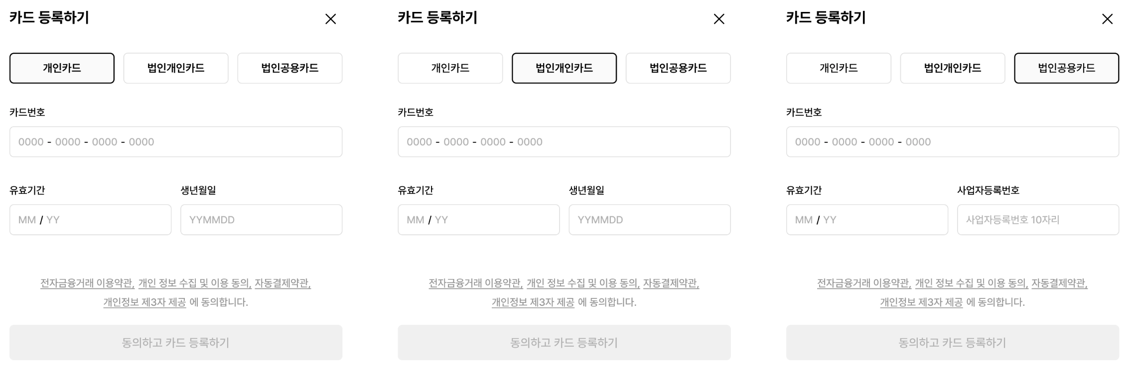 β+ λλ¬μ μΉ΄λ λ±λ‘νκΈ°β λ²νΌμ μ ν ν, μΉ΄λ μ 보λ₯Ό μ λ ₯νκ³ βλμνκ³ μΉ΄λ λ±λ‘νκΈ°βλ₯Ό μ ννμ¬ μ μ₯ν©λλ€.
