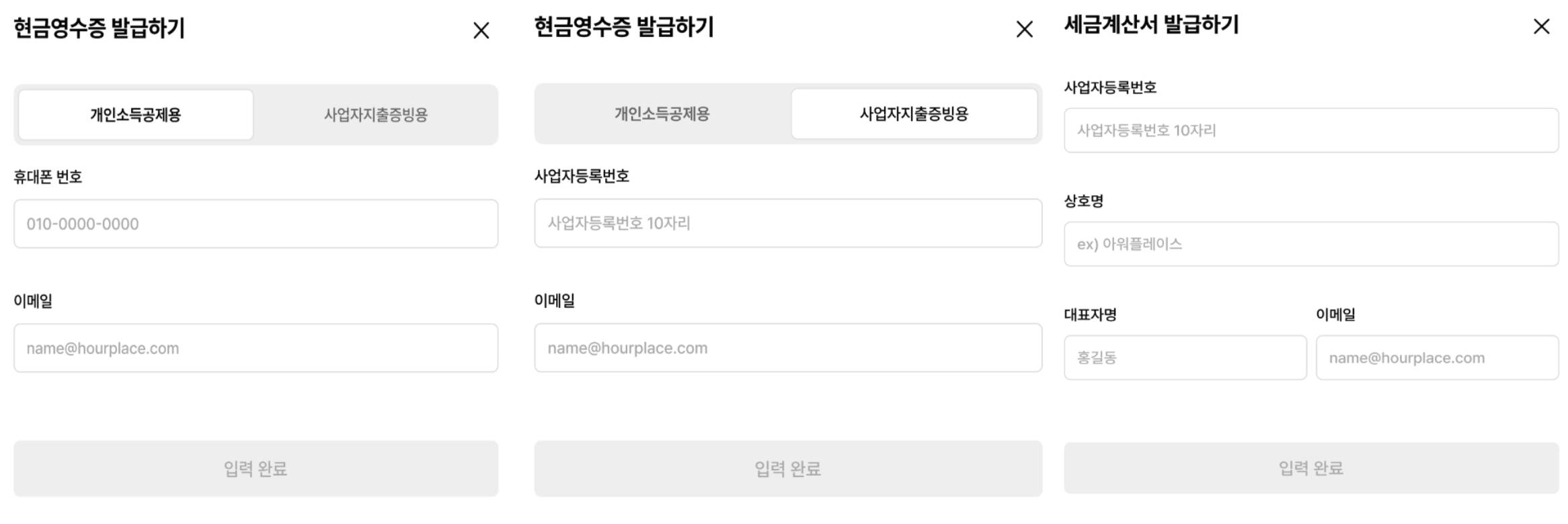 아워플레이스는 2021년 3월부터 소득세법에 따라 의무 발행을 시행 중입니다.