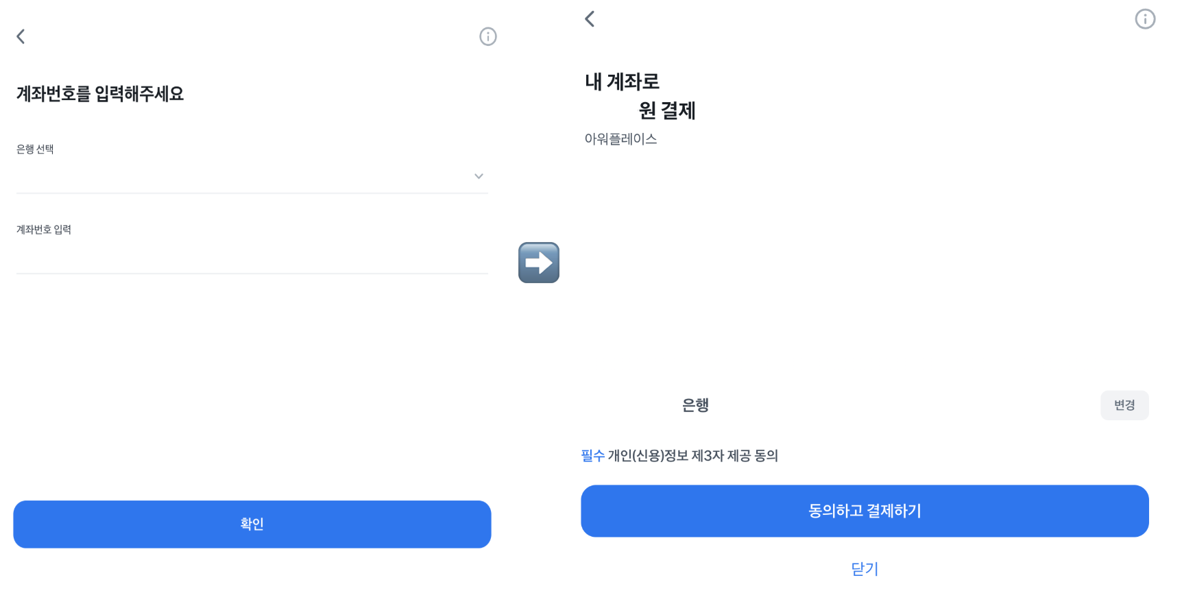 퀵 계좌이체로 결제수단 선택 시,