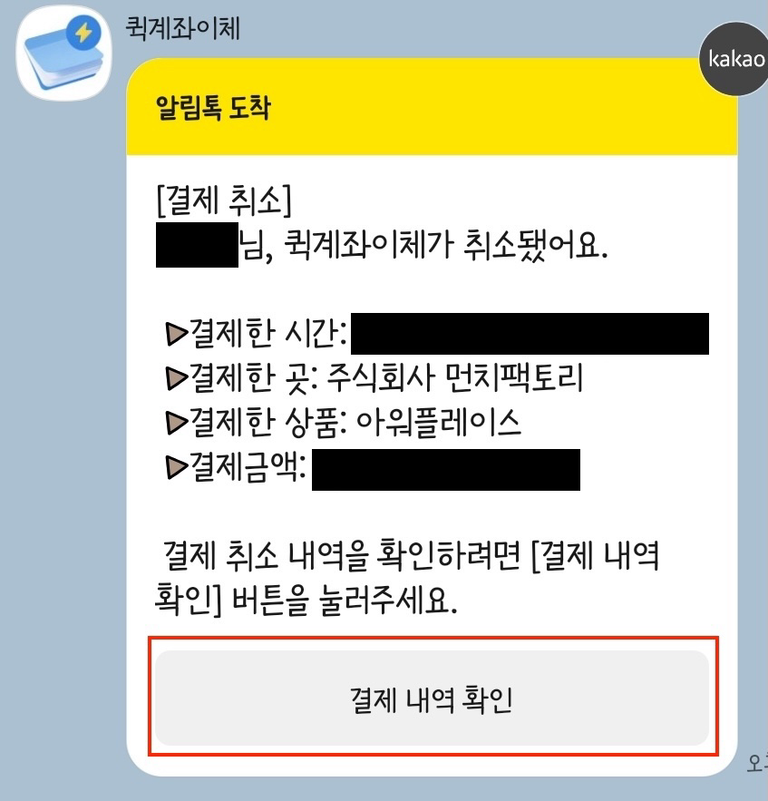 퀵 계좌이체 결제 취소 시, 연결된 계좌로 금액이 환불됩니다.